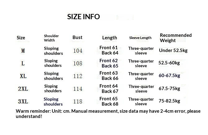 1. Asian sizes are 1 to 2 sizes smaller than European and American people. Choose the larger size if your size between two sizes. Please allow 2-3cm differences due to manual measurement. 2. Please check the size chart carefully before you buy the item, if you don't know how to choose size, please contact our customer service. 3.As you know, the different computers display colors differently, the color of the actual item may vary slightly from the following images.